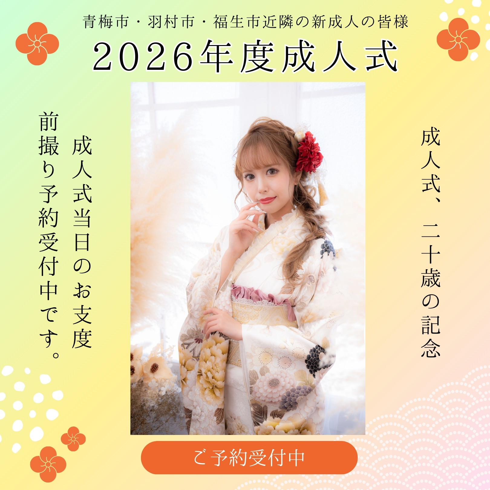青梅市・羽村市・福生市の成人式当日のヘアメイクや着付けの予約も、できるだけ早く行うことが大切です。