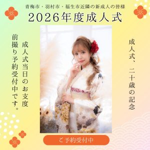 【2026年度成人式】青梅市・羽村市・福生市・飯能市・あきる野市の新成人必見!前撮り&当日のお支度は東京花嫁苑へ